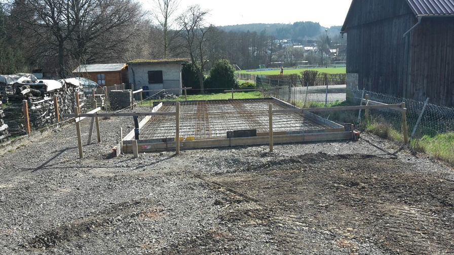 2015 wurde das Fundament gegraben, im Frühjahr 2017 erfolgte das Aufschottern und Gießen der Bodenplatte. Die Grundfläche der Halle beträgt sechs mal zwölf Meter.